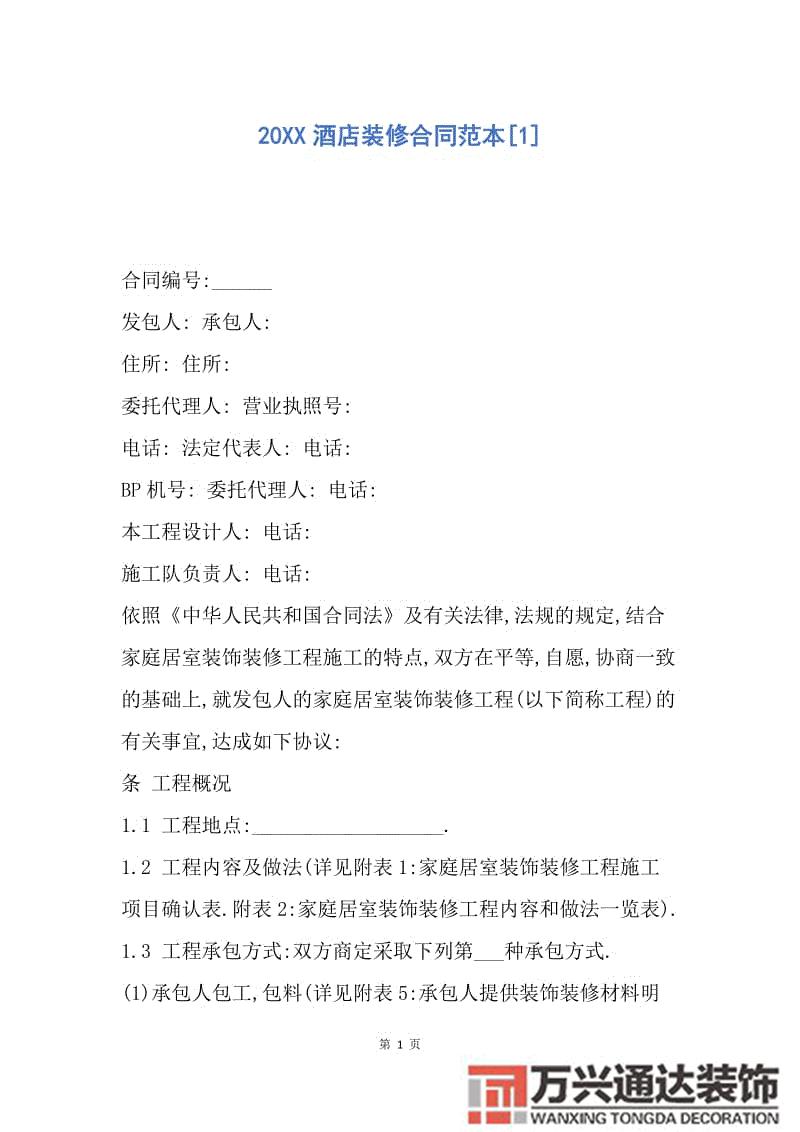 • 宾馆装修合同宾馆装修合同范本免费下载